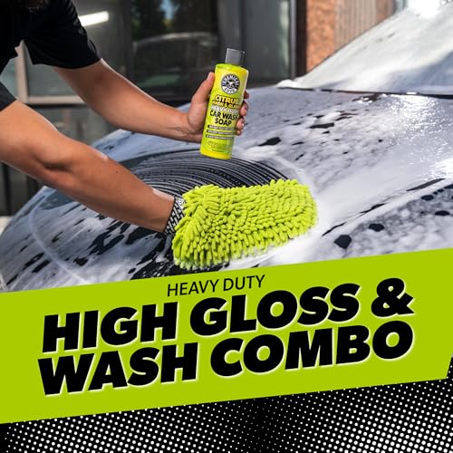 CITRUS WASH & GLOSS – High-foaming shampoo from Chemical Guys lifts dirt and road film while gloss enhancers leave paint looking slick and shiny; works with foam cannon, foam gun, or two-bucket wash