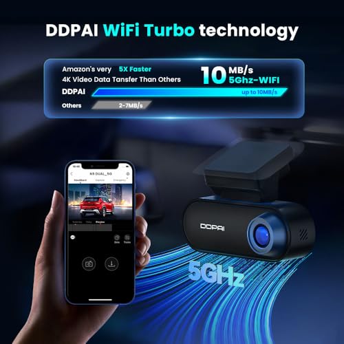 5GHz WiFi & Built-in GPS for Instant Access: Streamline video management with 5GHz WiFi Turbo technology. View, download (up to 10 MB/s), and share 4K footage directly on your iOS/Android device via the DDPAI app. Built-in GPS from ddpai dash camera for cars tracks route and speed, while over-the-air (OTA) updates keep your dash cam current.