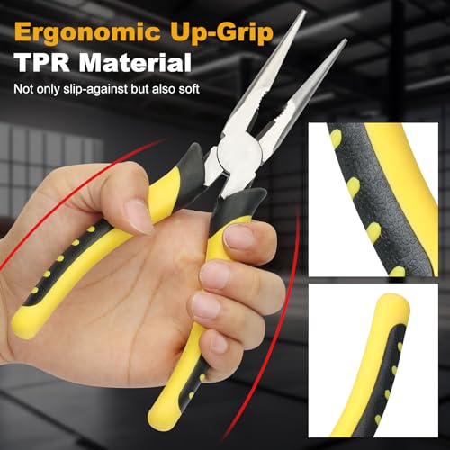 High Quality Material: Crafted from forged heavy-duty steel, these needle nose pliers feature excellent rust resistance, superior corrosion protection, and outstanding durability. The sharp, hardened cutting edges provide strong cutting power without bending, ensuring long-lasting performance