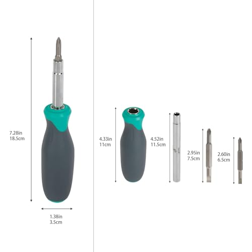 Amazon Basics 6-in-1 Multi-Bit Screwdriver/Nut Driver, Multicolor(Silver, Northern Glow Green, Grey)