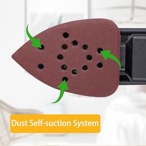 Versatile Sanding: Comes with 10 assorted sandpapers ( #60, #80, #120, #150, #220 grains) to tackle various surfaces and materials. Universal sandpapers can be easily found elsewhere.