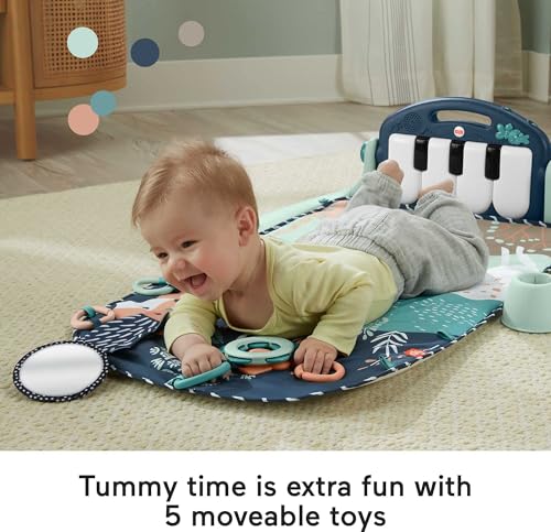 Fisher-Price Baby Playmat Kick & Play Piano Gym with Musical and Sensory Toys for Newborn to Toddler, Navy Fawn