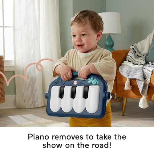 The Fisher-Price Kick & Play Piano Gym is a musical activity gym with 4 ways to play as your baby grows from newborn to toddler! Moveable toys on the overhead arch encourage little ones to bat and grasp as they lay on the playmat and kick up some tunes on the piano. The arch adjusts for tummy-time play and the piano toy removes, so little musicians can sit up and play or take the show on the road.
