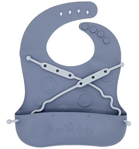 BUSY BABY Bungee Bib – Adjustable Silicone Bib with Pocket & Tether System for Mess-Free Meals with Babies & Toddlers