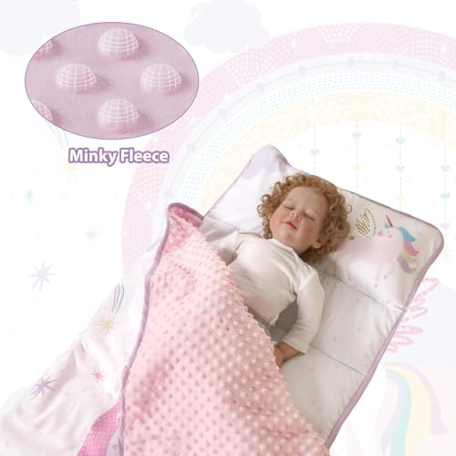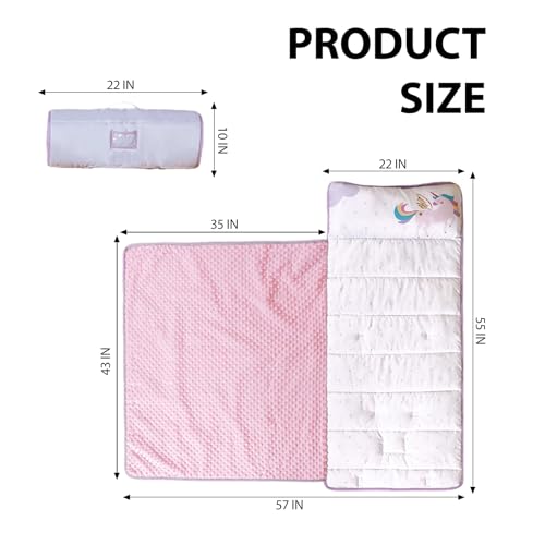 Nap Mats for Preschool, Toddler Sleeping Bag for with Removable Pillow and Minky Blanket Thickened,Rollup Design, 55X22IN Soft Microfiber for Preschool, Daycare Sleeping Bag, Ages 3-7 Years