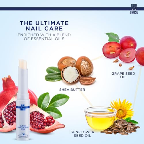 NATURAL INGREDIENTS: Blue Cross cuticle conditioning balm stick is enriched with a blend of natural ingredients and essential oils, Sunflower Seed Oil, Grape Seed Oil and Shea Butter to support nail growth, strength and health.