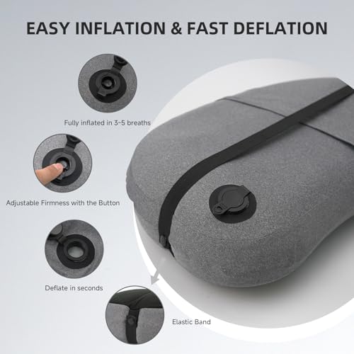 【AIR-ADJUSTABLE TRAVEL CUSHION】Inflatable pillow ergonomic curve locks air pressure to relieve neck pain. Dual-use as an inflatable travel cushion for car/airplane seats. professional valve design prevents leaks during sleep.