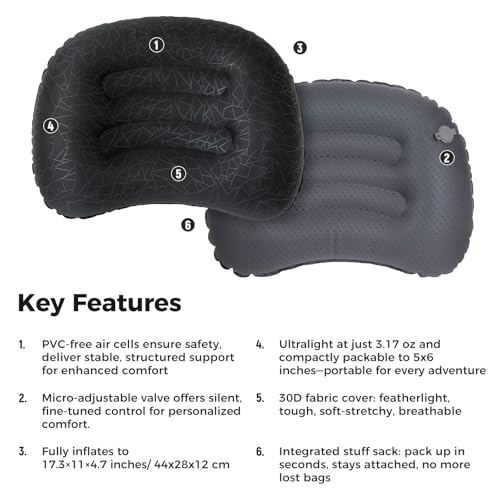 ATEPA Inflatable Camping Pillow, Ultralight Waterproof Travel Pillow with Ergonomic Support & Leak-Proof Air Valve, Compact Portable Pillow for Hiking Backpacking Tent Airplane Beach, Black