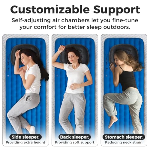 Customizable Support & Adjustable Pillow Height: With a simple press of the black valve button, you can fine-tune the firmness to your preference—whether you’re a side sleeper needing extra height or a back sleeper seeking soft support. Self-regulating air chambers let you control your comfort level for better sleep outdoors.