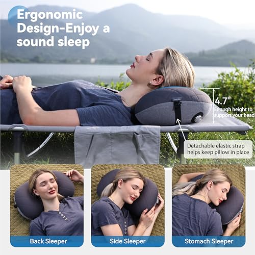 Ergonomic Design for Homelike Comfort: When you sleep on your back, the sunken baffles in the middle keep your head in place, the scalloped bottom edge contours to your neck. When you sleep on your side, its height makes your head and spine level. You can easily adjust it to your preferred height through the air valve, giving you a good night’s sleep on the trail.