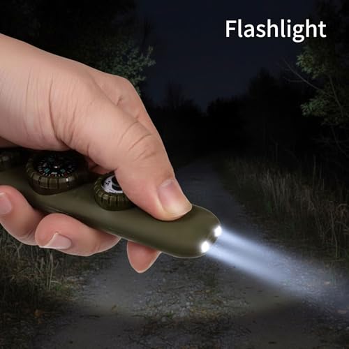 1. Multifunctional whistle includes: Emergency whistle + precision compass + temperature-sensitive thermometer + LED signal light + magnifying glass + 360° reflector + sealed info capsule