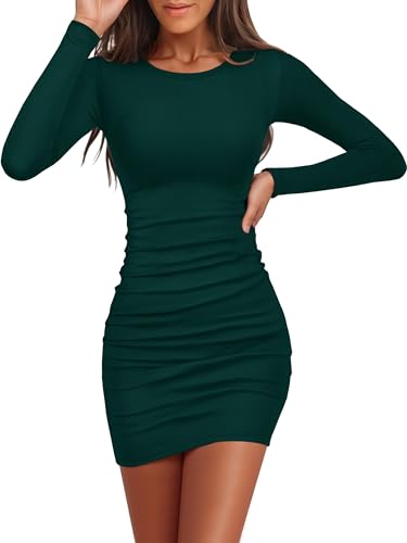 ANRABESS Womens Fall Long Sleeve Short Dress Rib Knit 2025 Fashion Basic Slim Fit Party Cocktail Night Bodycon Mini Dresses