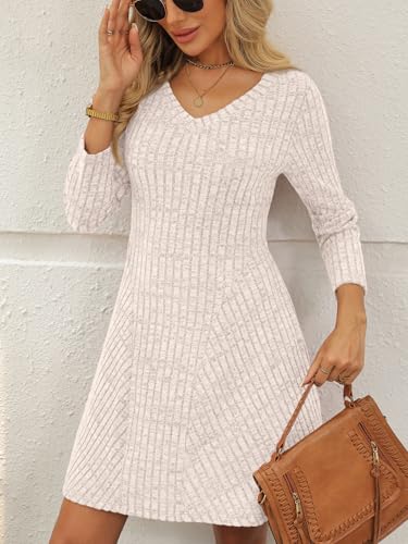 AUTOMET Womens Sweater Dresses Winter Long Sleeve Fall Fashion 2025 V Neck A-Line Flowy Mini Casual Dress Comfy Work Clothes