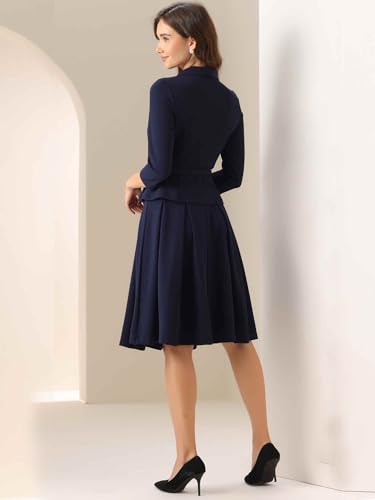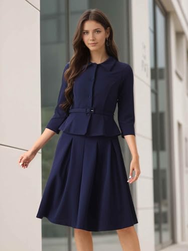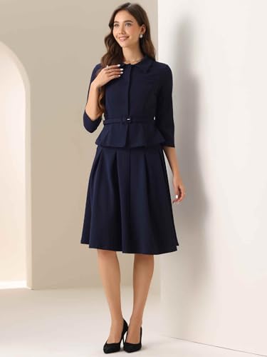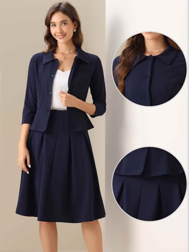 Allegra K Business Skirt Suit Sets for Women’s 2 Piece Outfits Office 3/4 Sleeve Blazer Jacket Pleated Skirts