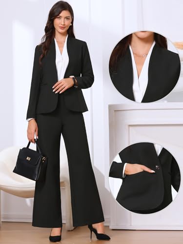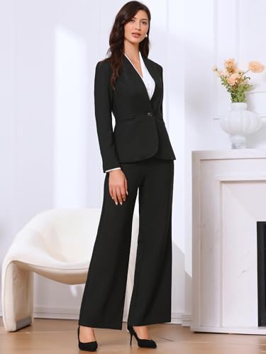 Allegra K Pants Suits for Women Dressy 2 Piece Office Collarless Blazer and Pants Set Business Casual Outfits
