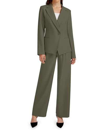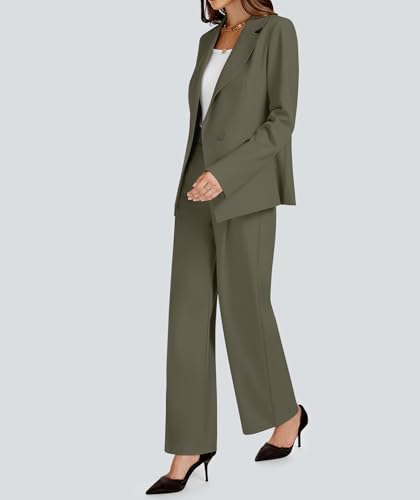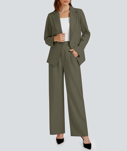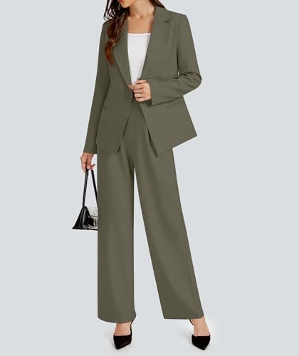 Casly Lamiit 2 Piece Outfits for Women Business Casual Single Button Blazer Jacket and Wide Leg Pants Matching Suit Sets