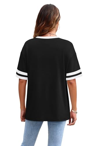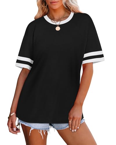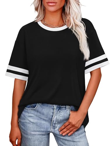 WIHOLL Womens T Shirts Loose Fit Short Sleeve Tees Crew Neck Color Block Summer Tops 2026 Fashion