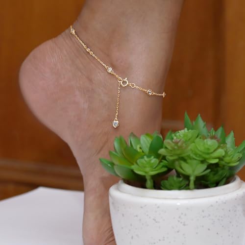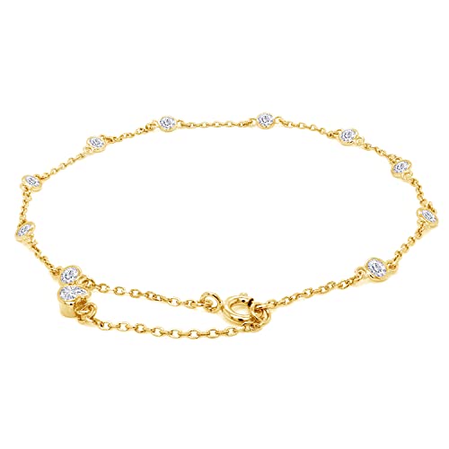 Station Anklet Bracelet For Women 3MM Round Lab Created Moissanite Bezel Set Single Piece Dainty Link Chain Anklet in 14K Gold Plated 925 Sterling Silver 8″ to 10″ Fine Jewelry Gift for Her