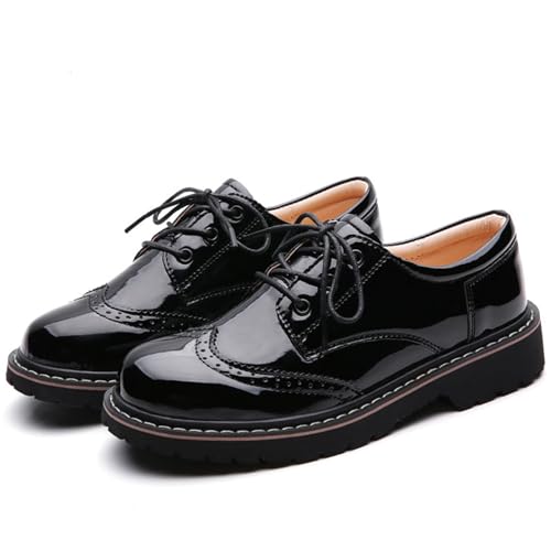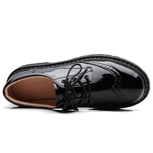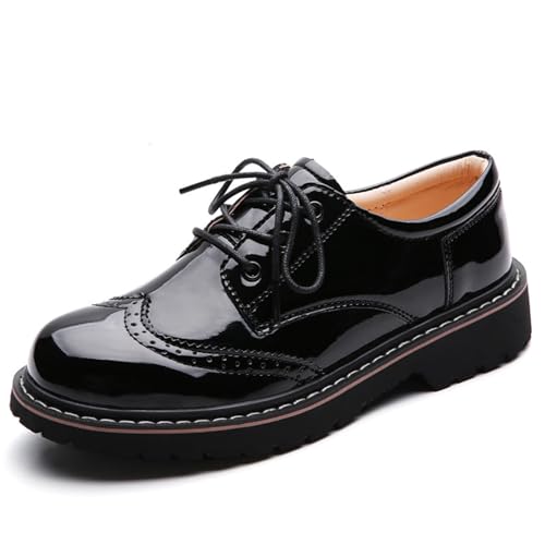 Oxford Shoes for Women,Perforated Lace-up Round Toe Leather Low Heel Brogues Shoe for Girls Ladies Women