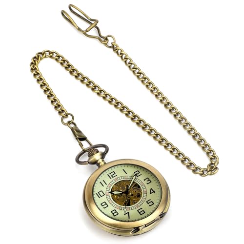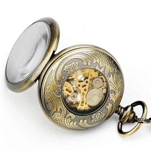 Mechanical Pocket Watch with Chain for Men Half-Hunter Case Hand Wind Up Analog Pocketwatch for Women Ideal Gifts