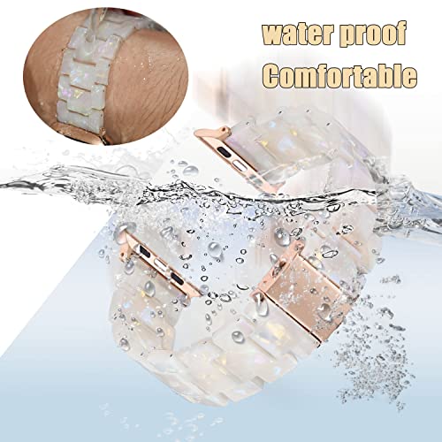 V-MORO Resin Band Compatible with Apple Watch Series 7/8/9/10/11 41/40/38/42mm, Women Fashion Strap for iWatch Series 6/5/4/3/2/1/SE, Lightweight Bracelet Wristband Replacement, Ivory White-Rose Gold