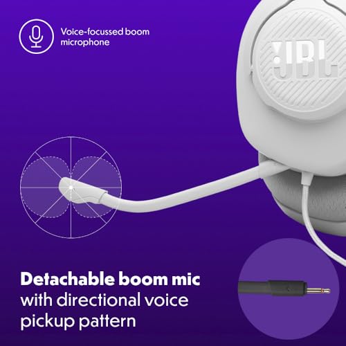 JBL Quantum 100M2 – Wired Over-Ear Gaming Headset with omnidirectional, Detachable mic with Mute Option and Fabric-Covered Memory Foam Ear Cushions, Compatible with All Platforms (White)
