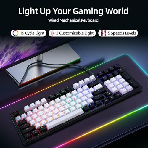 WJX Mechanical Gaming Keyboard with Dynamic RGB Backlit, Hot-Swappable Switches, Gasket-Mounted Design, PBT Keycaps, Compact Layout with 98 Keys, Anti-Ghosting Esports Keyboard for PC/Mac (White)