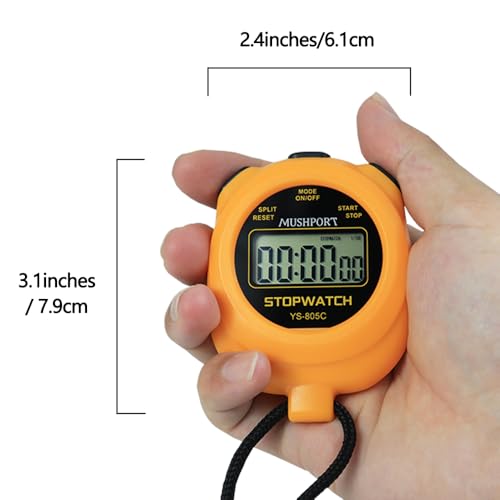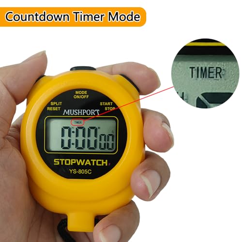 Coaches Stopwatch Timer with Countdown— MUSHPORT coaches timer has stopwatch and countdown mode, no clock no date, simple operation, easy to use. It is with a nylon lanyard (neck strap) which is convenient to carry for coaches referees and PE-teacher.