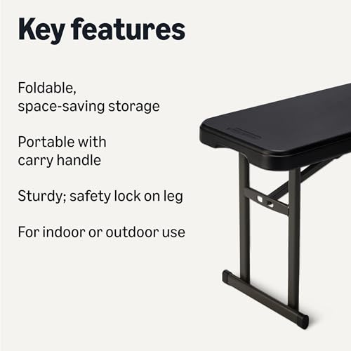 Amazon Basics 6ft Folding Bench, Indoor & Outdoor with Carrying Handle, Black