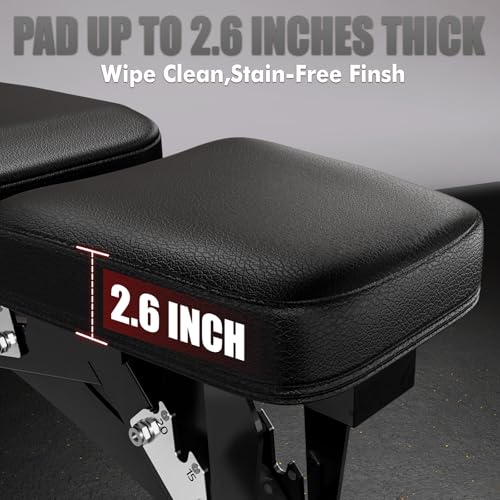 Comfort & Durability: The training bench is equipped with a 2.75″ thick cushion, providing ultimate comfort. Its ergonomic design can relieve pressure, making it suitable for long-term workouts. The surface is covered with high-quality leather that is sweat-resistant and easy to clean.