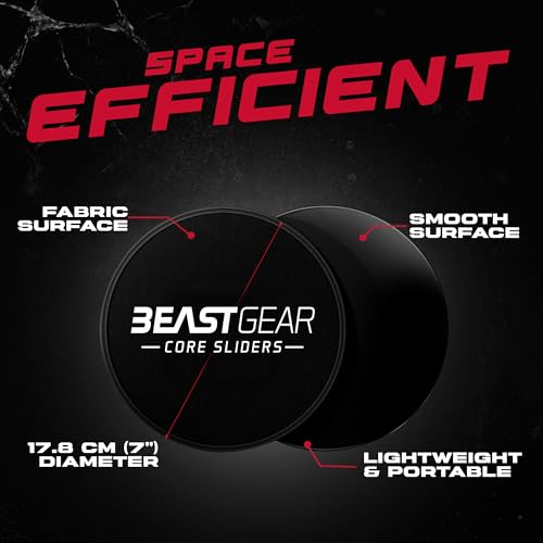 Core Sliders by Beast Gear – Double Sided Gliding Discs for Abdominal Exercises – Carpet and Hard Floors