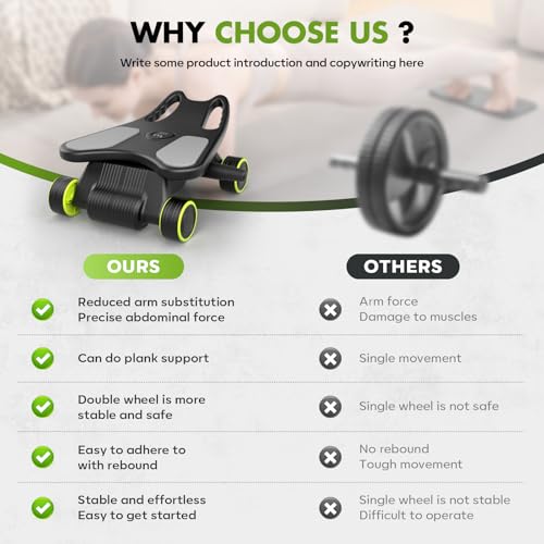 Stable 4-Wheel Design & Knee Pad Included: Achieve ultimate stability and comfort. Unlike common single wheels, our ab wheel roller features a robust 4-wheel base for enhanced balance and support during exercise. The included non-slip knee pad offers comfortable protection, making this ab machine a hassle-free choice for home gyms.