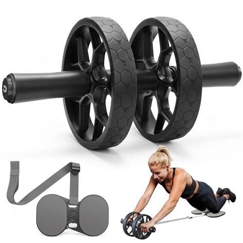 【Beginner-Friendly Design for Confident Control】Designed for smooth, steady rollouts, this ab wheel features a 4.4-inch dual-wheel system and 500 lb tested resistance band keep every move safe and balanced. Soft, ergonomic handles offer a secure, comfortable grip. And to help you get started easily, a workout guide and training plan are included — ideal workout equipment for beginners.