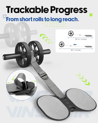 VINSGUIR Ab Roller Wheel for Beginners to Pros, Ab Roller with Adjustable & Detachable Resistance Band, Abs & Core Workout Equipment for Home Gym, Abdominal Wheel with Exercise Guide and Knee Pad, Men Women