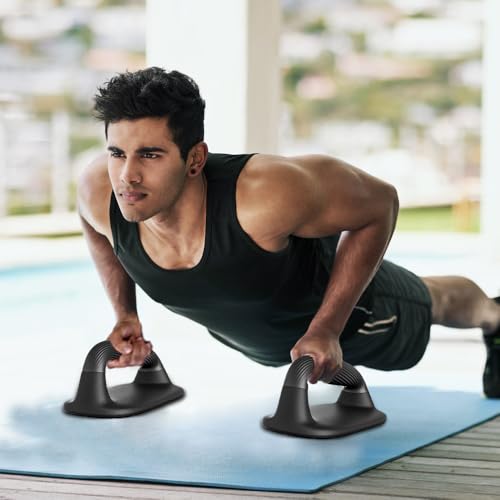 BeneLabel Push Up Bars Black Pushup Handles with Bottom Anti-Slip Pad Push Up Handles for Floor Soft Plastic Strength Training Pushup Stands with Comfortable Grip