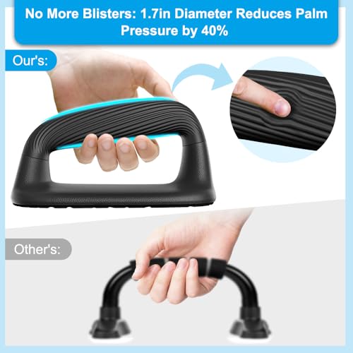 Comfortable Handle: The push up handles are made of high-quality soft plastic, protect your hands. No More Blisters: 1.7in Diameter Reduces Palm Pressure by 40%.