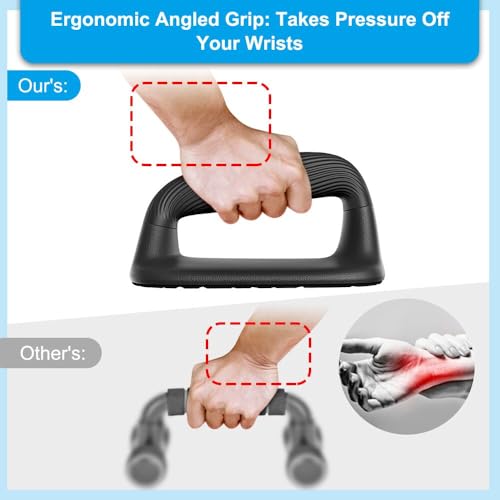 Ergonomic Angled Grip: Unlike other push up stands, we use a slanted grip design to reduce wrist pressure.