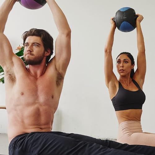 AEROMAT Dual Grip Power Medicine Balls for Abdominal Training and Rotational Movements – 9″ Diameter – Weights Color-Coded