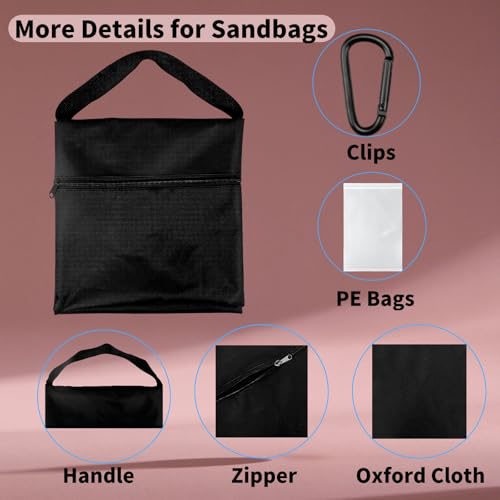 2 Pack Sandbags with 4 PE Bags, Weight Bags for Light Stand Photography Video Equipment, Heavy Duty Sand Bags for Backdrop Stand, Photo Tripod, C Stands and Light Stands