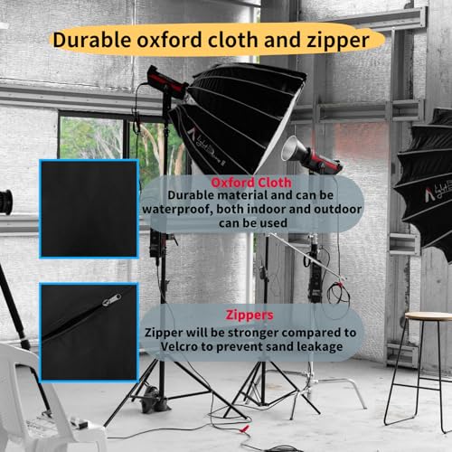 4. Easy to Use: Empty sand bags are very easy to use, you need to fill the PE bag with sand or rock, and then put the PE bag filled with sand into the heavy duty sand bags, while using the aluminum clips to hang the sand bag or place it on the light stand