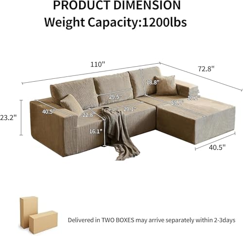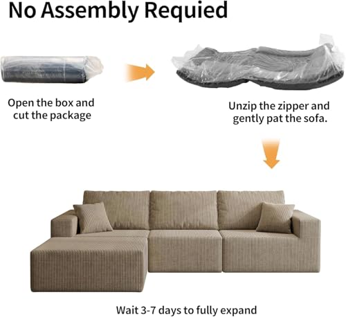 [Compressed, No-Assembly Required] Our No Bones L-Shaped Sectional Couch Set arrives vacuum-compressed in boxes for safe, convenient shipping. Simply unpack and let the high-density foam fully expand within 3–7 days to reveal its cloud-like comfort.