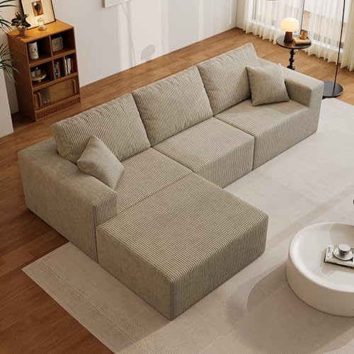 110″ Boneless Cloud Sectional Couch for Living Room, Compressed Modular L-Shaped Sofa with Deep Seat, Frameless Corduroy Couch in Boxes, No Assembly Required 3-Seater (Right-Facing Chaise, Grey)