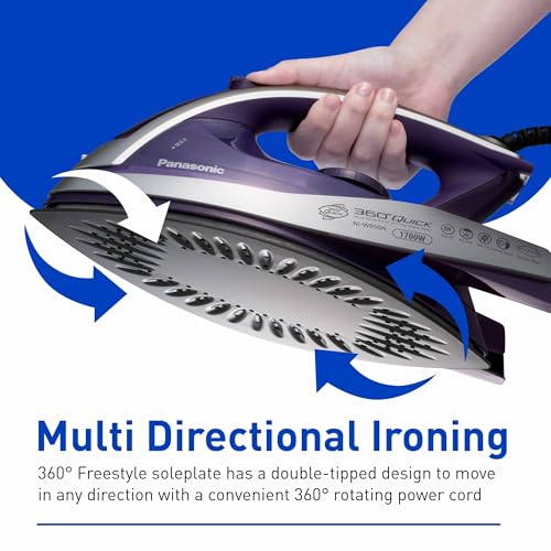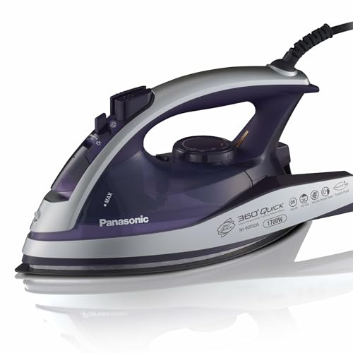 Panasonic Dry and Steam Iron with Alumite Soleplate, Fabric Temperature Dial and Safety Auto Shut Off – 1700 Watt Multi Directional Iron – NI-W950A, Purple