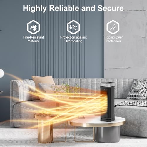 Multiple Safety Protections: This portable space heater is equipped with tip-over protection and overheat auto shut-off features to help prevent accidents and ensure safe operation. Its sleek, modern design complements any home décor, making it not only a reliable heat source but also a stylish essential for the winter season. The remote control requires 2 AAA batteries (batteries not included).