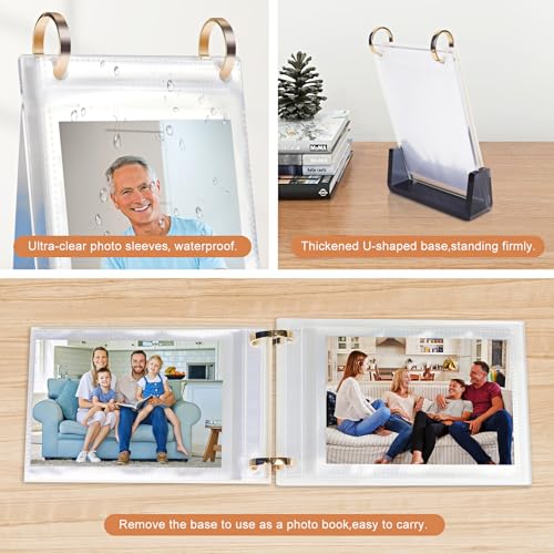 4×6 Acrylic Picture Frame: Made with thick high-quality acrylic material, this desktop accessory features a sleek black U-shaped base, transparent acrylic support panel, and 30 sheets of double-sided PVC photo sleeves (60 Pockets). The sturdy U-shaped acrylic base prevents tipping, ensuring your frame stays upright on office desks, shelves, or nightstands.