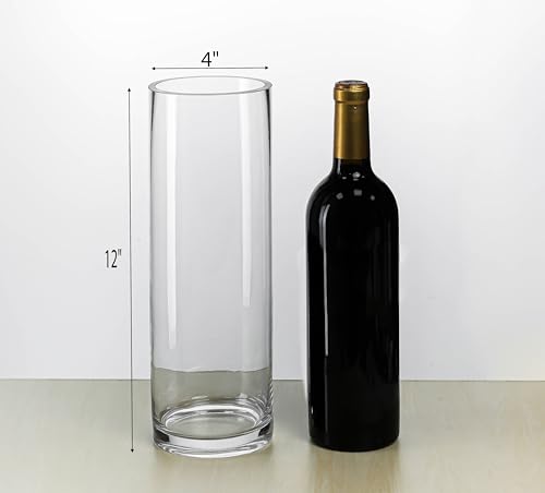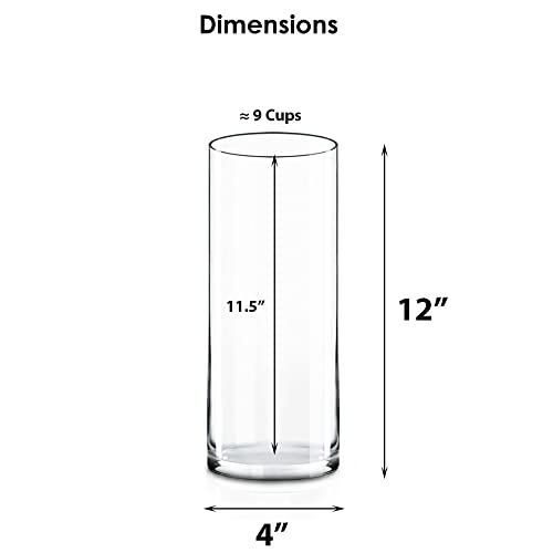CYS Excel Clear Glass Cylinder Vase (H:12″ D:4″) | Multiple Size Choices Glass Flower Vase Centerpieces | Hurricane Floating Candle Holder