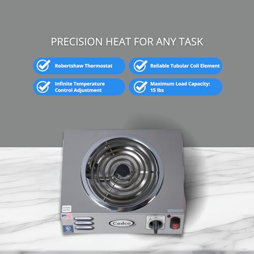 ROBERTSHAW THERMOSTAT: As with other Cadco hot plates, this one has a Robertshaw thermostat that offers endless heat control to attain desired temperatures.