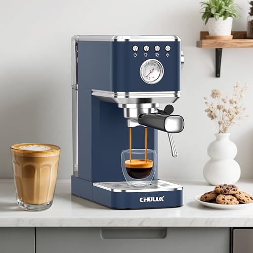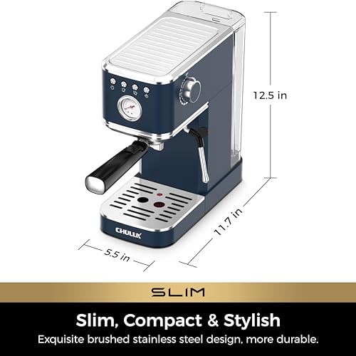 CHULUX Slim Espresso Machine with Milk Frother Steam Wand, 20 Bar Professional Italian Pump Espresso Coffee Machine for Home Cappuccino & Latte Maker, Navy