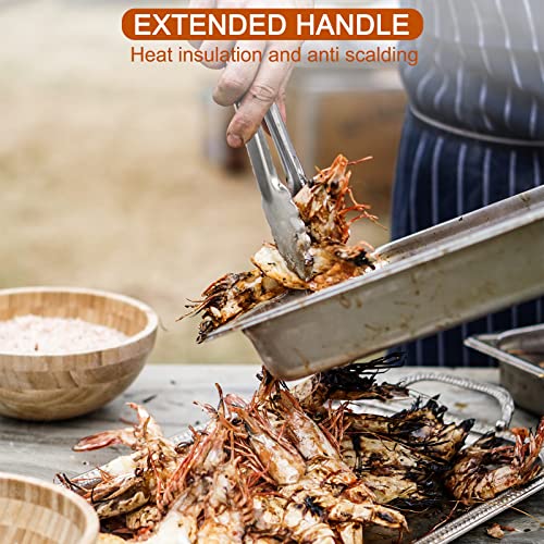 HEAT RESISTANT ERGONOMIC HANDLES: The handle of grill tongs is cushioned with non-slip silicone, great for thumb rest, and ensures handle grip and control. The metal tong head is super heat resistant. Easy to rinse, dishwasher safe and easy to clean.