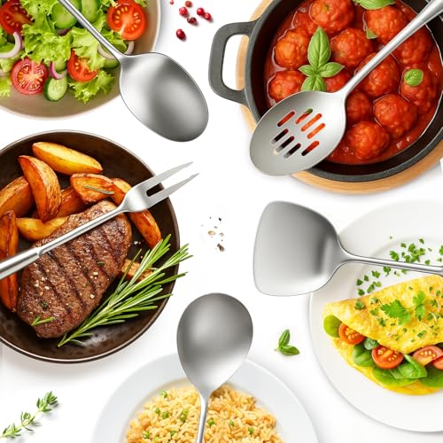 COMFORTABLE ERGONOMIC HANDLES – Our metal kitchen utensils are constructed with ergonomic hollow handles which provide your hands a comfortable grip while working in the kitchen, reducing hand fatigue. Reducing heat transfer, not easy to burn your hands.